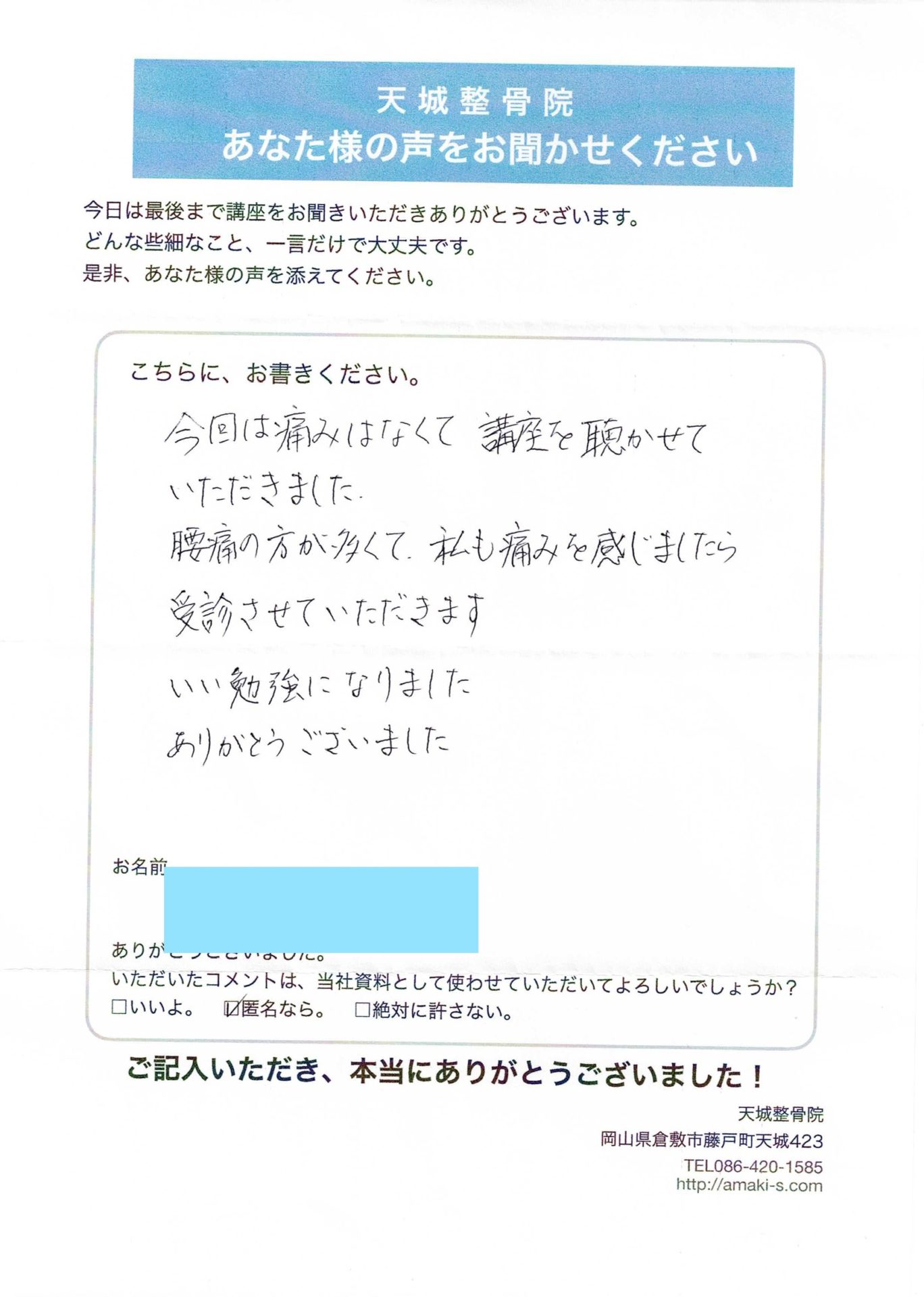 CSR活動レポート 倉敷市にある粒江中洲集会所にて、腰痛解消講座を開催させていただきました