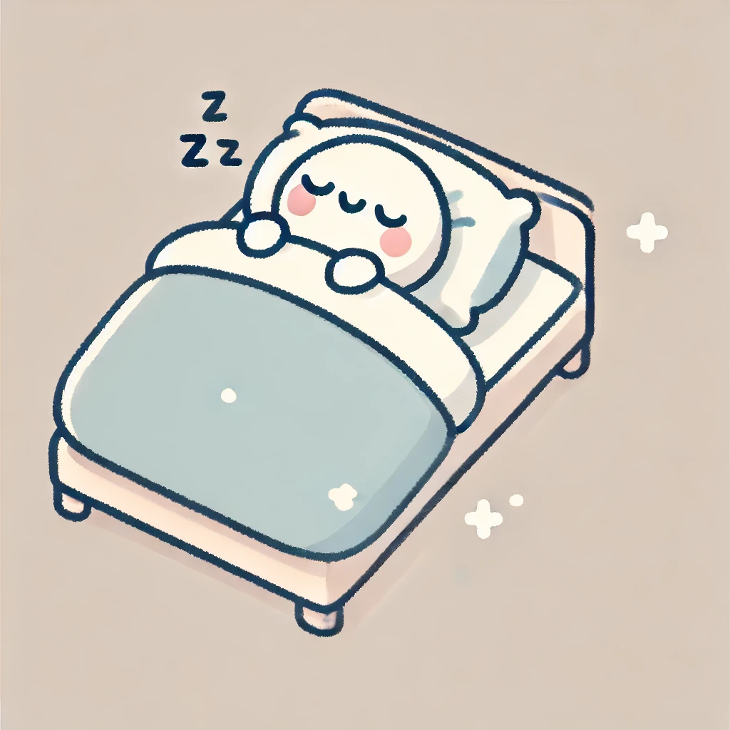 DALL·E 2024-06-28 13.57.58 – A cute and simple illustration of a person sleeping comfortably in bed. The person is shown lying on their back with a peaceful and content expression - 倉敷市藤戸町の完全予約制整骨院〝天城整骨院〟です。