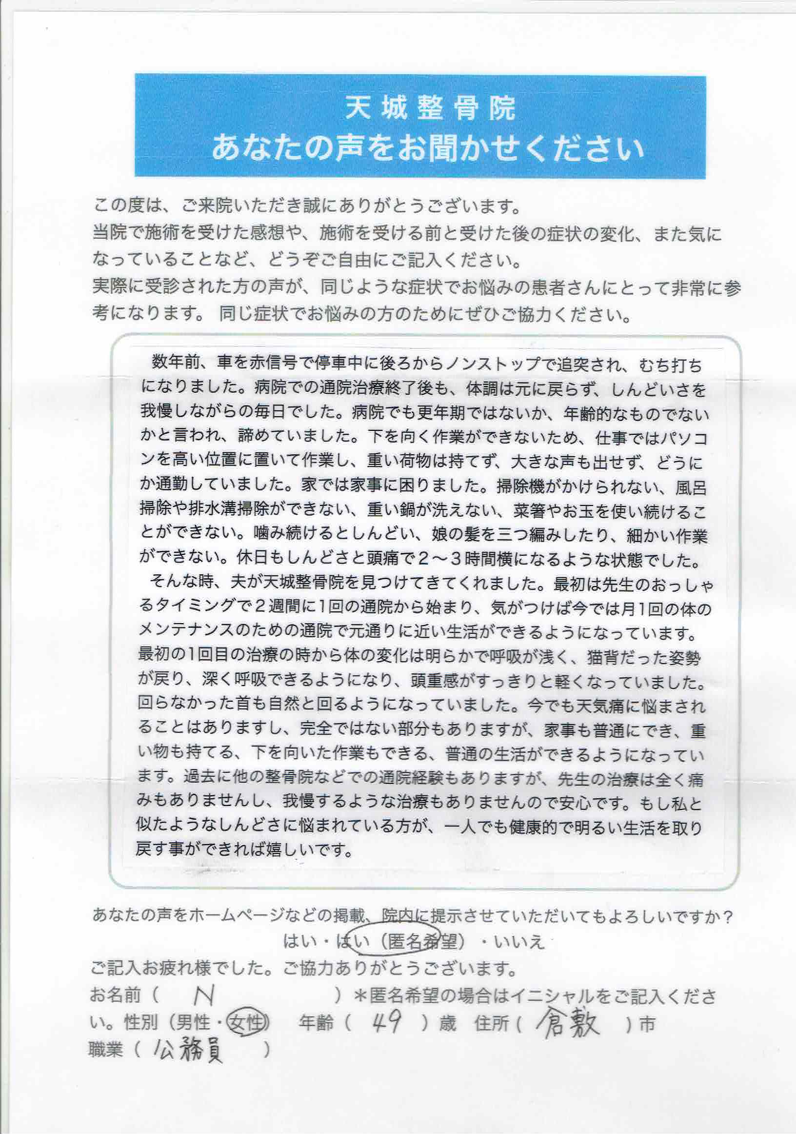 患者様の声 2026.1.5 - 倉敷市藤戸町の完全予約制整骨院〝天城整骨院〟です。