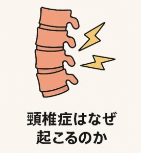 頸椎症とは、首の骨や椎間板が年齢や長年の負担で変形し、神経や血管に影響を与える疾患です。