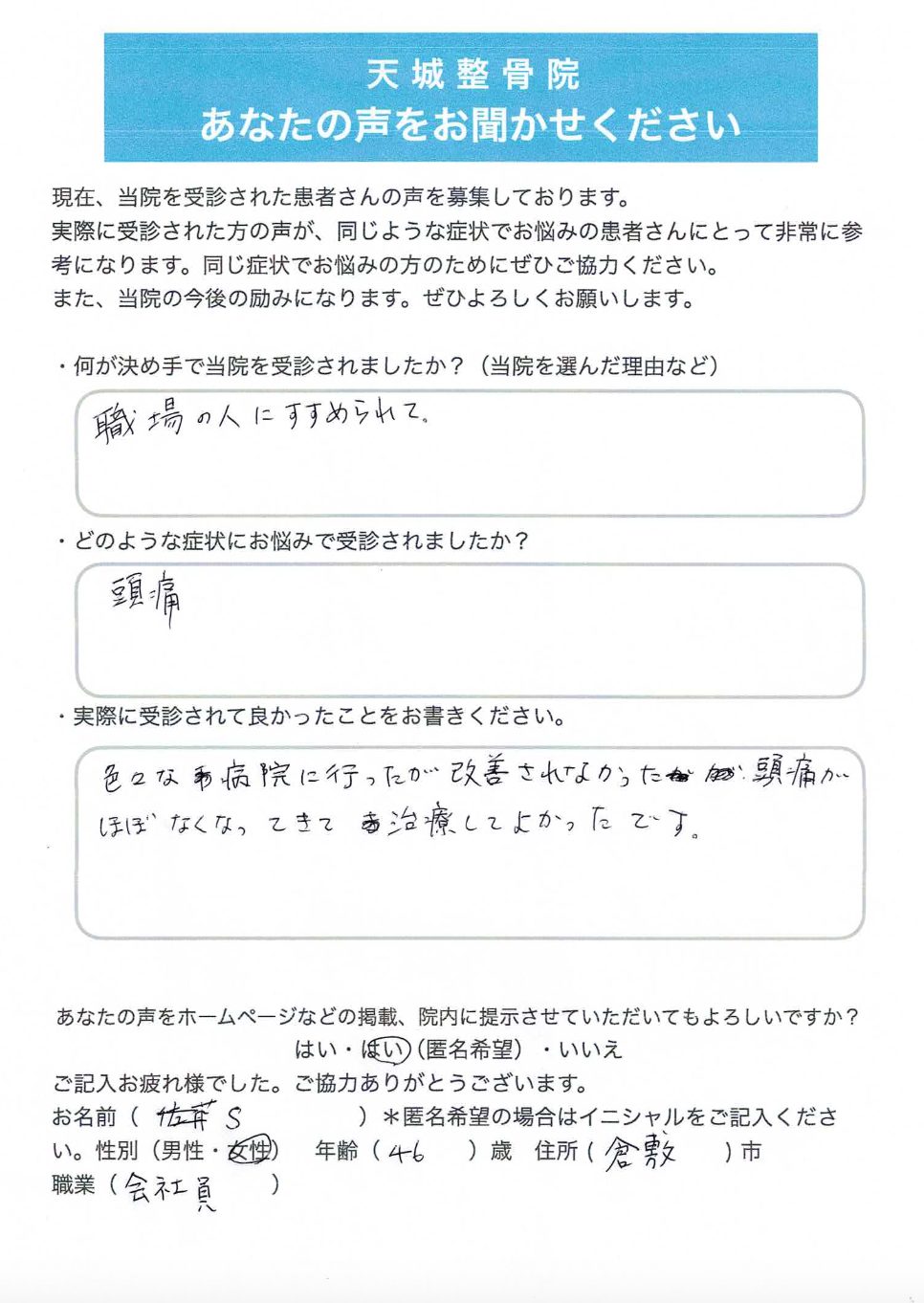 毎日続く左側のキーンとした頭痛で悩まれていた40代女性の患者さんの改善事例
