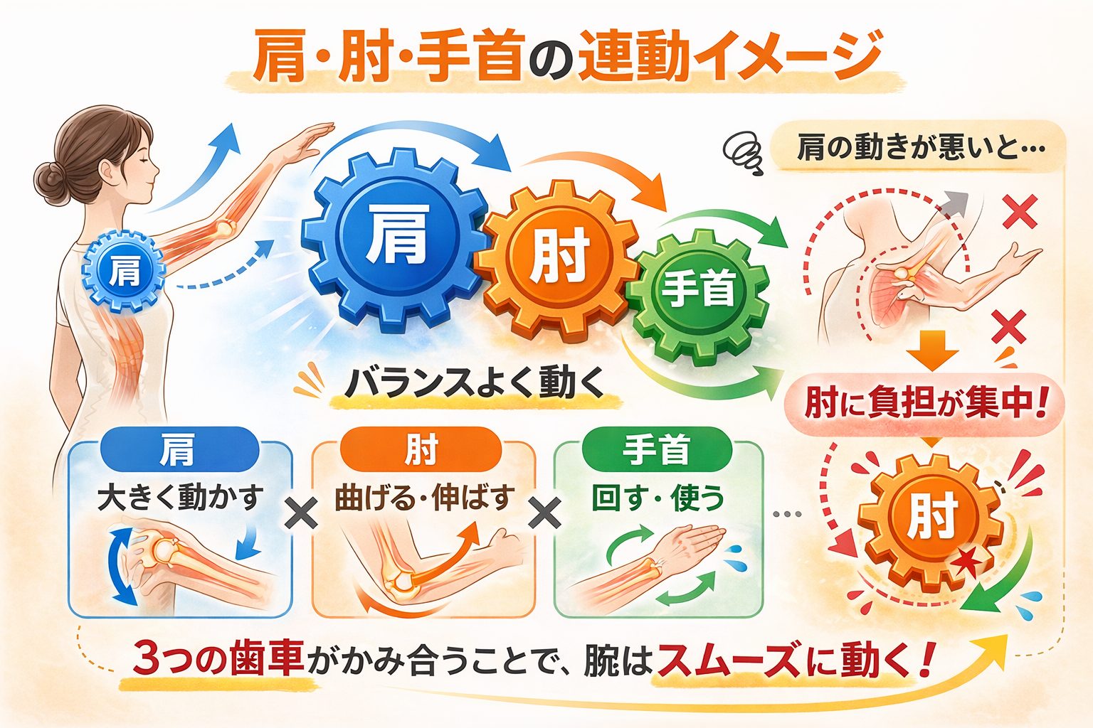 肩・肘・手首の連動メカニズム
